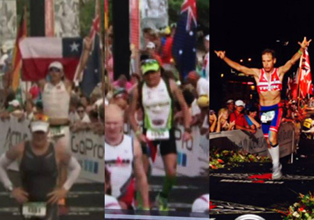 Michel Uteau, Marcelo Cárdenas y Juan Antonio Arrasate cruzando la meta en Kona 2013