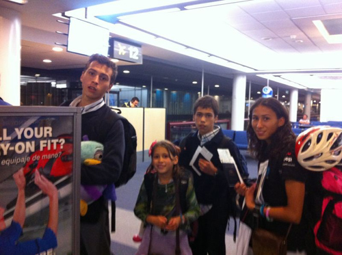 En el aeropuerto de Frankfurt, Francisco (hijo), Martina,Ignacio y Cata