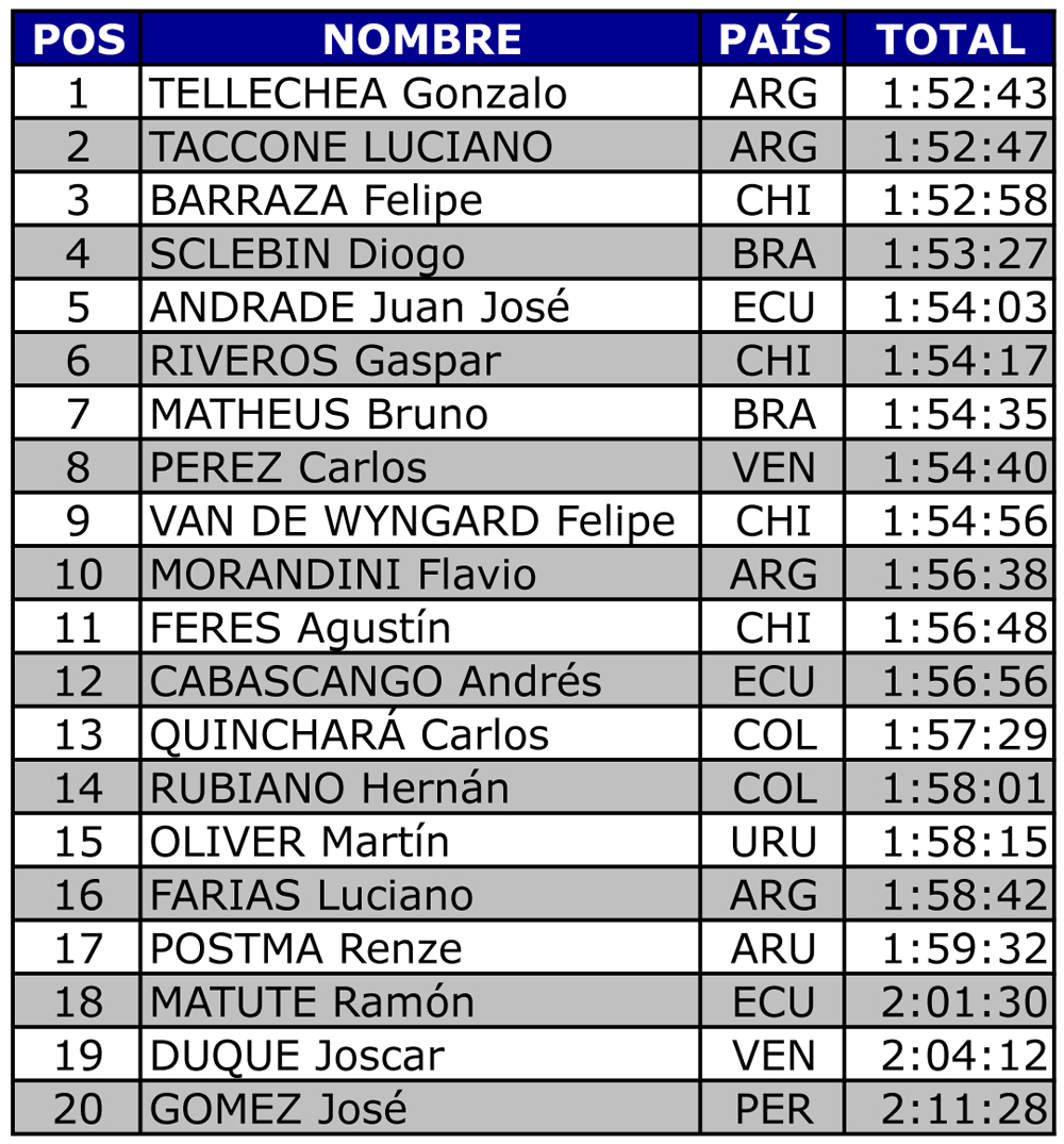 Gaspar Riveros finalizó en sexto lugar, detrás del brasileño Diogo Sclebin (4to) y el ecuatoriano Juan José Andrade (5to). Vande, quien dijo no estar satisfecho con su rendimiento, llegó noveno.
