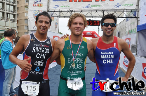 El top 3 Hombres: 2º Gaspar Riveros (Route), 1º Shane Barrie (Australia) y 3º Felipe Barraza (UC)