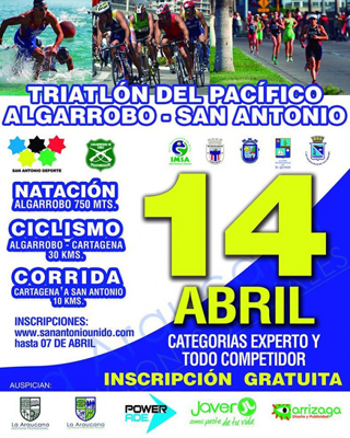 Por la presente hemos de notificarles que la Triatlón del Pacífico 2013, Algarrobo - San Antonio, para el 14 de Abril de 2013, por indicaciones de la Prefectura de San Antonio, no podrá realizarse, debido a la falta de efectivos policiales para esa fecha.