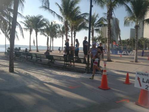 Y a trotar! El trote me lo tomé de la siguiente forma… por si a alguien le sirve. Me imagine 10 repeticiones de 1 km… como en la pista. Así que le metí desde que salí del Parque Cerrado. Al igual que en la bici, todo bien señalizado, circuito plano al borde del mar, 2 giros, 4 abastecimientos.
