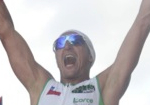 Eran 3 giros de 14 Kms., tenía la idea de correr pegado a 5’ x km, y así realizar un maratón de 3:30’ lo que era excelente para mí. Pero al parecer me bajé muy acelerado por el pedaleo fuerte de vuelta por lo que salgo a correr muy fuerte y sintiéndome muy bien promedio 4’28” indicaba mi Garmin, ufff cuidado me digo!! Y así fue en el km 17 siento un hormigueo en las manos y debo parar en la zona de abastecimiento. Veía en blanco y negro y me sentía muy fatigado. Empiezo a tomar mucha Coca Cola y a comer plátano y cuanta cosa había. Después de un rato me pongo a caminar y mi señora me acompaña dándome fuerzas y gritándome que no podía parar y que habíamos venido a terminar y ser finisher. Luego de una caminata de 1 km con ella y sus constantes motivaciones logro empezar a correr otra vez. A los 2 kms ya me sentía fuerte y repuesto y como ave fénix empiezo nuevamente a correr en mis ritmos. Lo que sí sagradamente cada 2 kms que eran los abastecimientos pasaba caminando unos 20 mts tomaba mucha Coca Cola y comía.