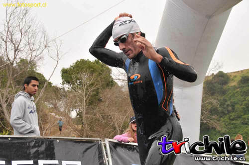 El día estaba ideal, nublado pero sin frío, y la primera noticia es Iriondo no viene... q xuxa?, que tuvo un accidente durante la semana..., lata a cagarse, empieza la prepa pa la carrera, timing algo lento al principio, pero van apurándose la gente de Mil Pies y está todo listo, charla técnica 10 minutos antes de empezar, una nadada para allá, otra para acá... Todo ready... Empieza la carrera y estoy con 2 más nadando en la punta y veo a un loko nadando a un ritmo de brazadas bastante bueno... Después caché que era Pancho Iñiguez, pasa primero la primera boya, yo segundo y de ahí hasta la salida, tengo que decir que los últimos 200 metros del nado los sufrí harto... claro, si por el tatoo no he nadado nada el último mes y medio, tirón de orejas por ello.