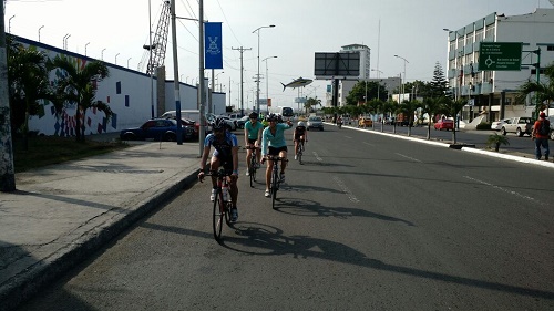 El sábado nos juntamos con otros chilenos y un grupo como de 20 ecuatorianos y nos fuimos a probar las bicis, fue un rodaje bien lento (menos mal porque los ecuatorianos no manejan muy bien, apenas hay semáforos y el que llega primero a la esquina toca la bocina). En la tarde bicis al parque cerrado y a pensar en la carrera.