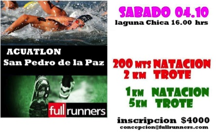 El próximo sábado 4 de octubre a las16 horas se realizará el Acuatlón San Pedro de la Paz en la laguna chica (Balneario Municipal) en Concepción y running por avenida Costanera.