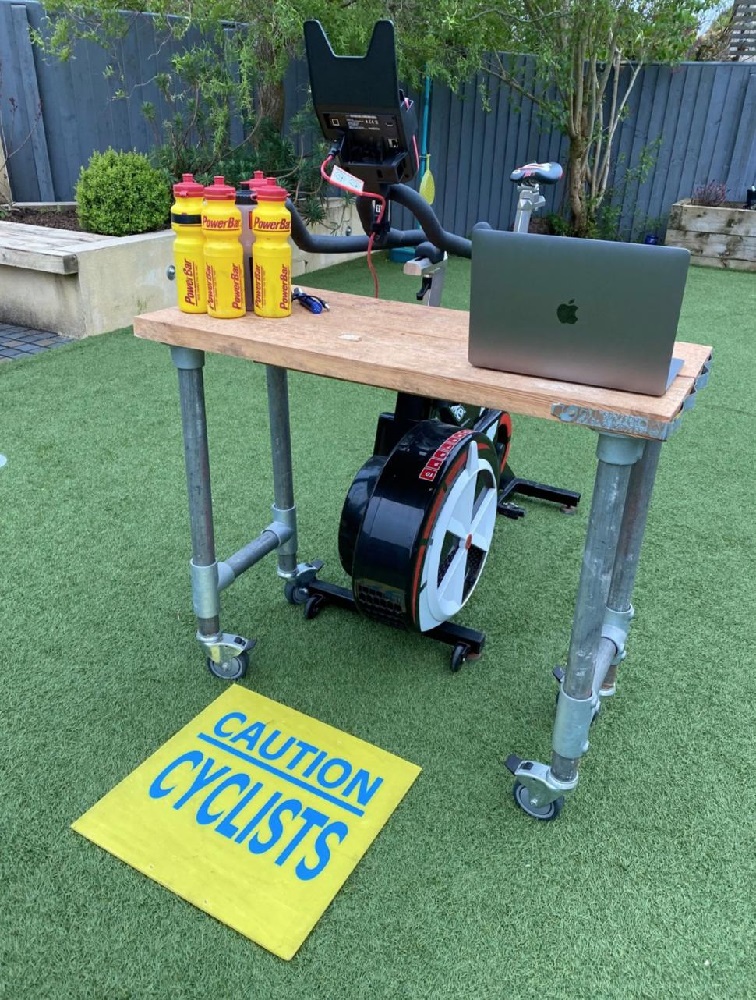 El británico nadó 3.8 kilómetros dentro de una piscina infantil (amarrado de la cintura), pedaleó 180 kilómetros en una rodillo y corrió 42 km alrededor del jardín de su casa, un desafío que comenzó a las 7 am y culminó a las 21 horas.