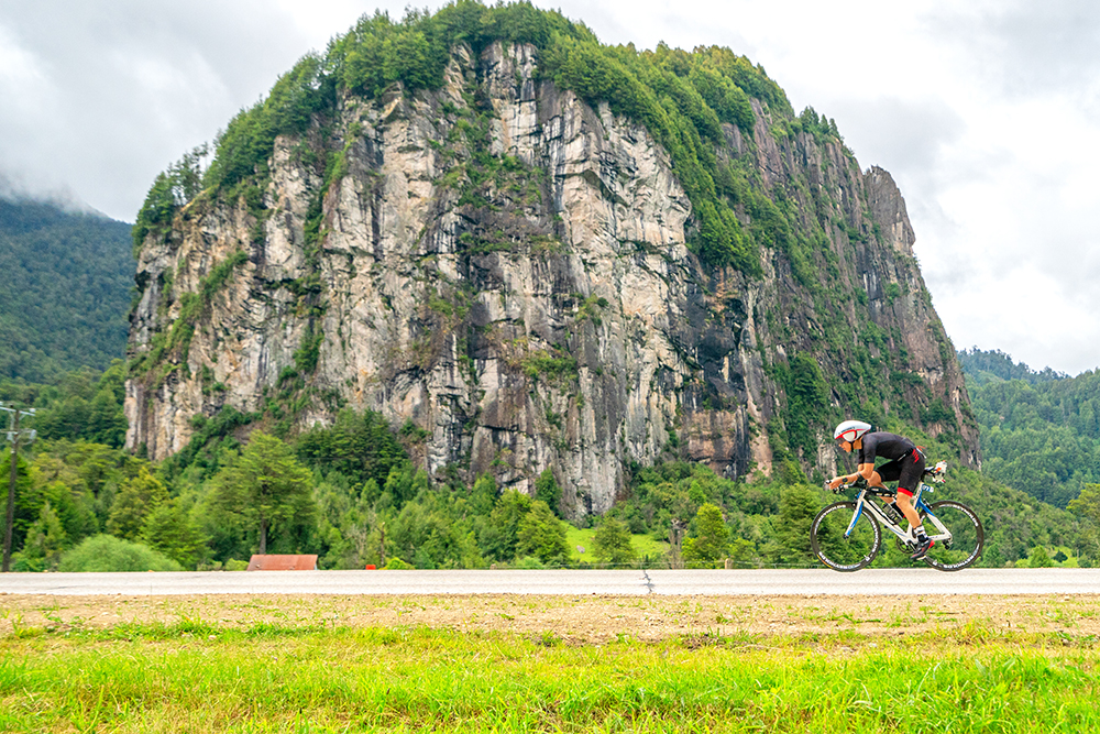 El evento comienza antes del amanecer en el fiordo de Aysén, donde los atletas saltarán desde el ferry Naviera Austral a las gélidas y puras aguas de la bahía de Chacabuco, para nadar 3.8 kms hasta el Puerto. De allí, montarán sus bicicletas para recorrer los 180 kms pavimentados de la Carretera Austral, hasta Villa Cerro Castillo, serpenteando caminos paradisíacos, muchas veces ventosos y empinados, pero acompañados de las vistas más espectaculares, dignas de una postal. Cumpliendo con esta etapa, sólo quedará la corrida, 42.2 kms junto al río Ibáñez, atravesando bosques milenarios, lagos y cascadas hasta llegar al mítico Lago General Carrera, donde finaliza la prueba.